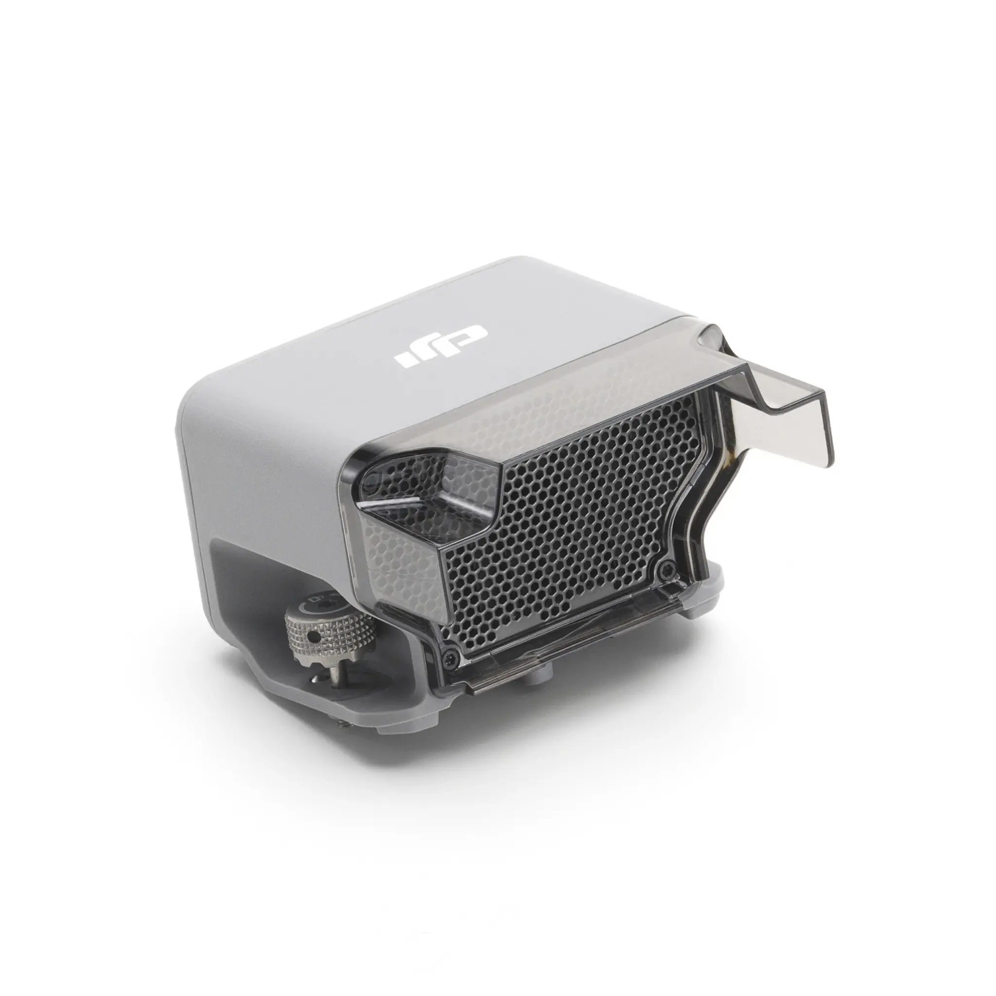 De AS1 is compact en lichtgewicht gebouwd, met een quick‑release montage via handvastgedraaide schroeven waardoor hij eenvoudig op de drone kan worden bevestigd. Het ontwerp houdt rekening met lange missies, inclusief een reserve adapterbeugel en inbussleutel voor veilige installatie. AS1 Speaker Product DJI